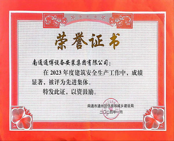 公司榮獲“2023年通州區(qū)住建局安全生產(chǎn)集體”