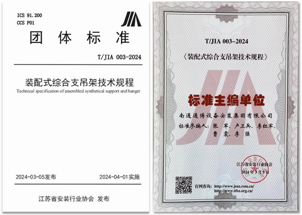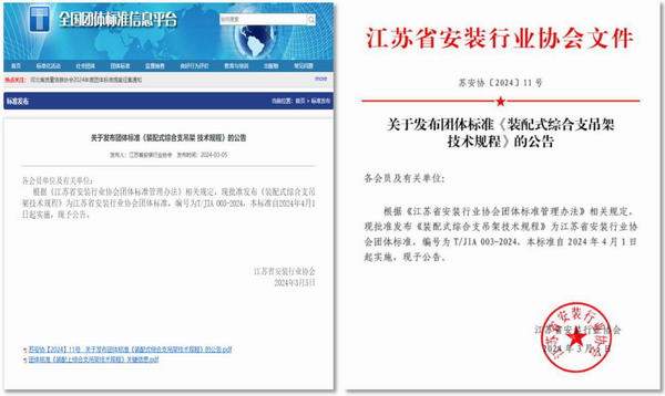 熱烈祝賀公司主編的團(tuán)體標(biāo)準(zhǔn)T/JIA003-2024 《裝配式綜合支吊架技術(shù)規(guī)程》公布實(shí)施